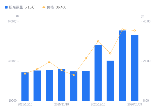 近一年(2025年1月10日至2026年1月9日),力星股份A股股东户数从2.4万户,增加至5.15万户,增幅114.60%,区间股价上涨220.99%。