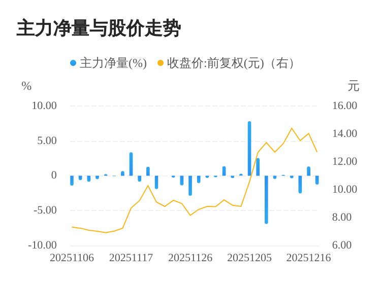 该股今日主力净量为负,且值较大,表明主力大幅流出,主动卖出明显多于主动买入。与此同时,今日换手率较高,主力抛售的嫌疑较大。投顾建议:投资者短期宜合理控制仓位,谨慎为佳。