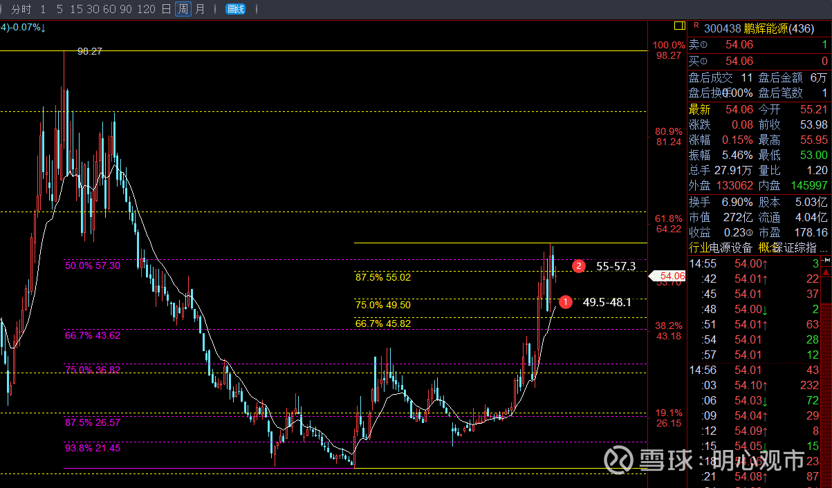 60.95的位置没有打过去,就代表57.3这个周压力未脱离,就没有打开新空间;暂时高位震荡态势。这个震荡允许探49.5-48~反压还是继续看57.3