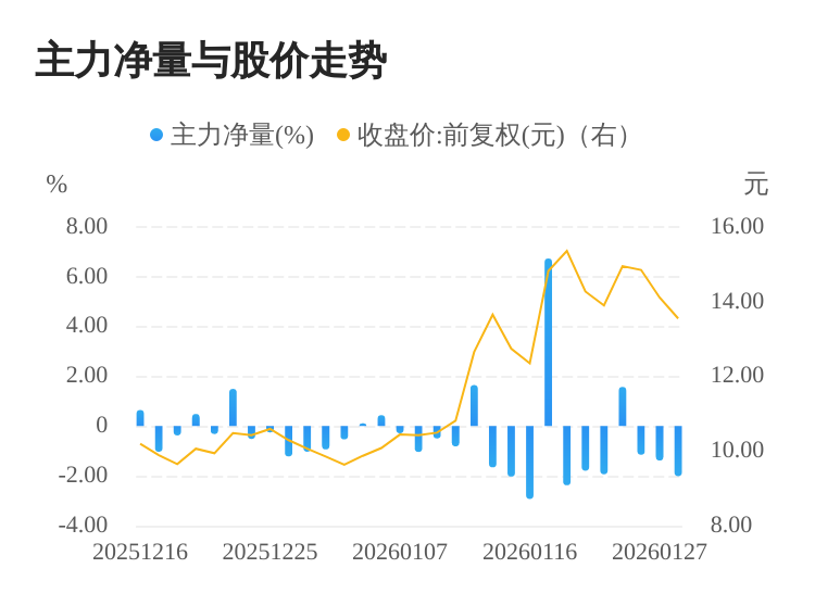 该股今日主力净量为负,且值较大,表明主力大幅流出,主动卖出明显多于主动买入。与此同时,今日换手率较高,主力抛售的嫌疑较大。投顾建议:投资者短期宜合理控制仓位,谨慎为佳。