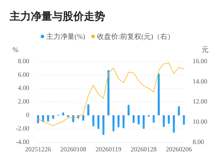 该股今日主力净量为负,且值较大,表明主力大幅流出,主动卖出明显多于主动买入。与此同时,今日换手率较高,主力抛售的嫌疑较大。投顾建议:投资者短期宜合理控制仓位,谨慎为佳。
