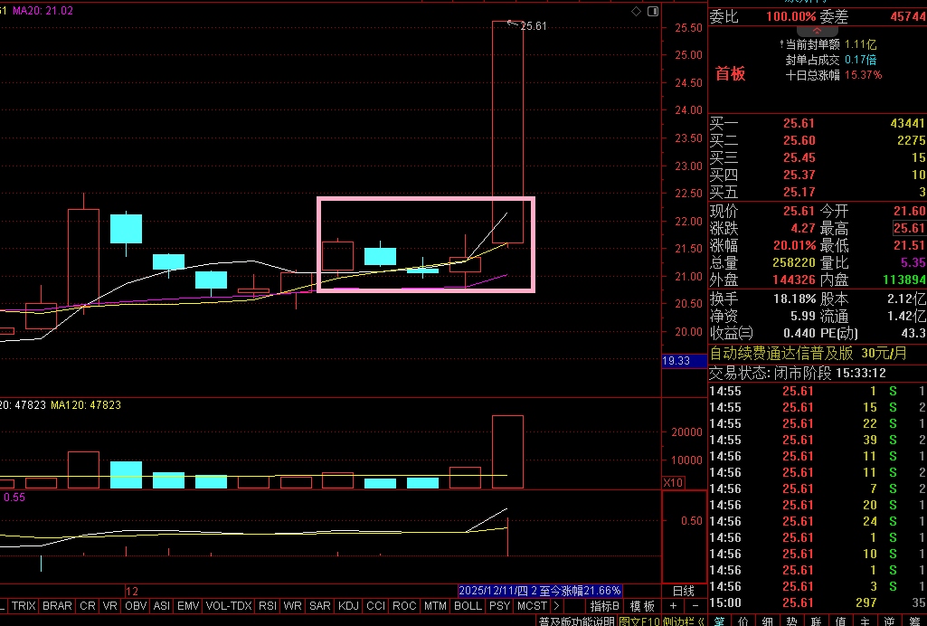 这个封板资金猛,直接就是全天成交量了。。。