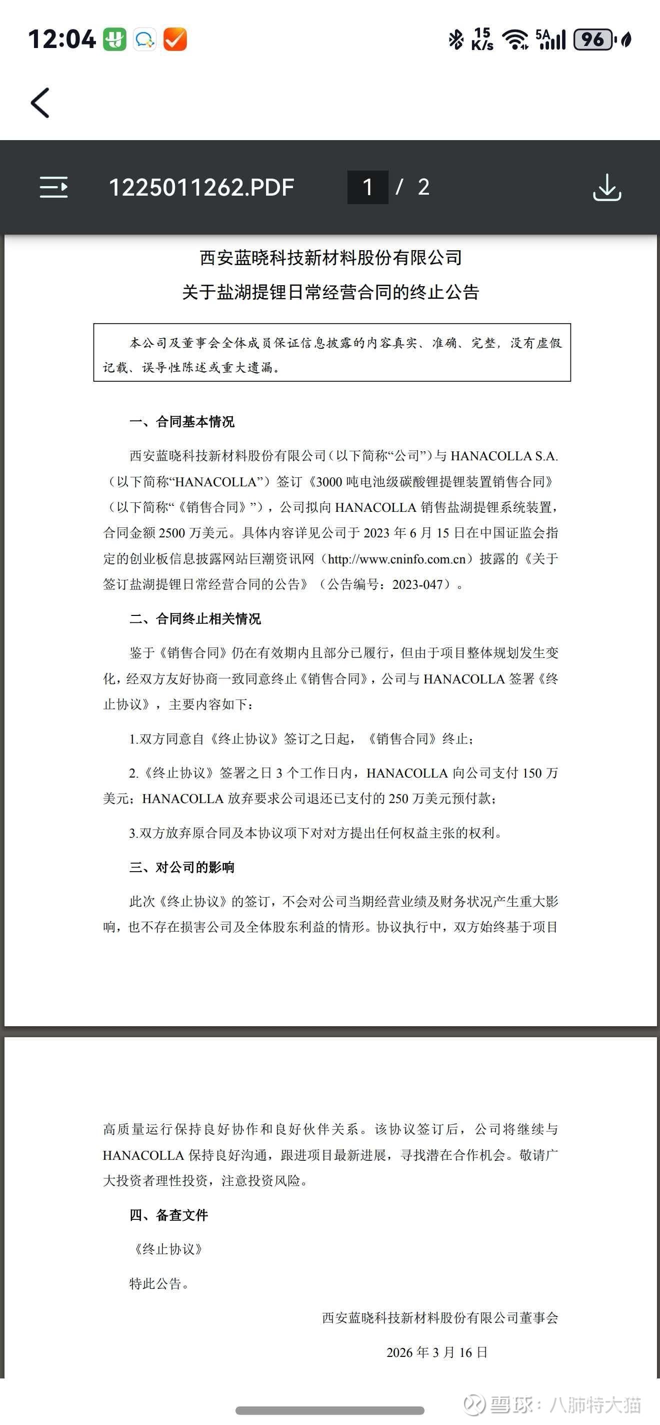 这则公告事不小,对应着三千多方吸附剂,影响了约两万吨碳酸锂当量,幸亏当初看它和
