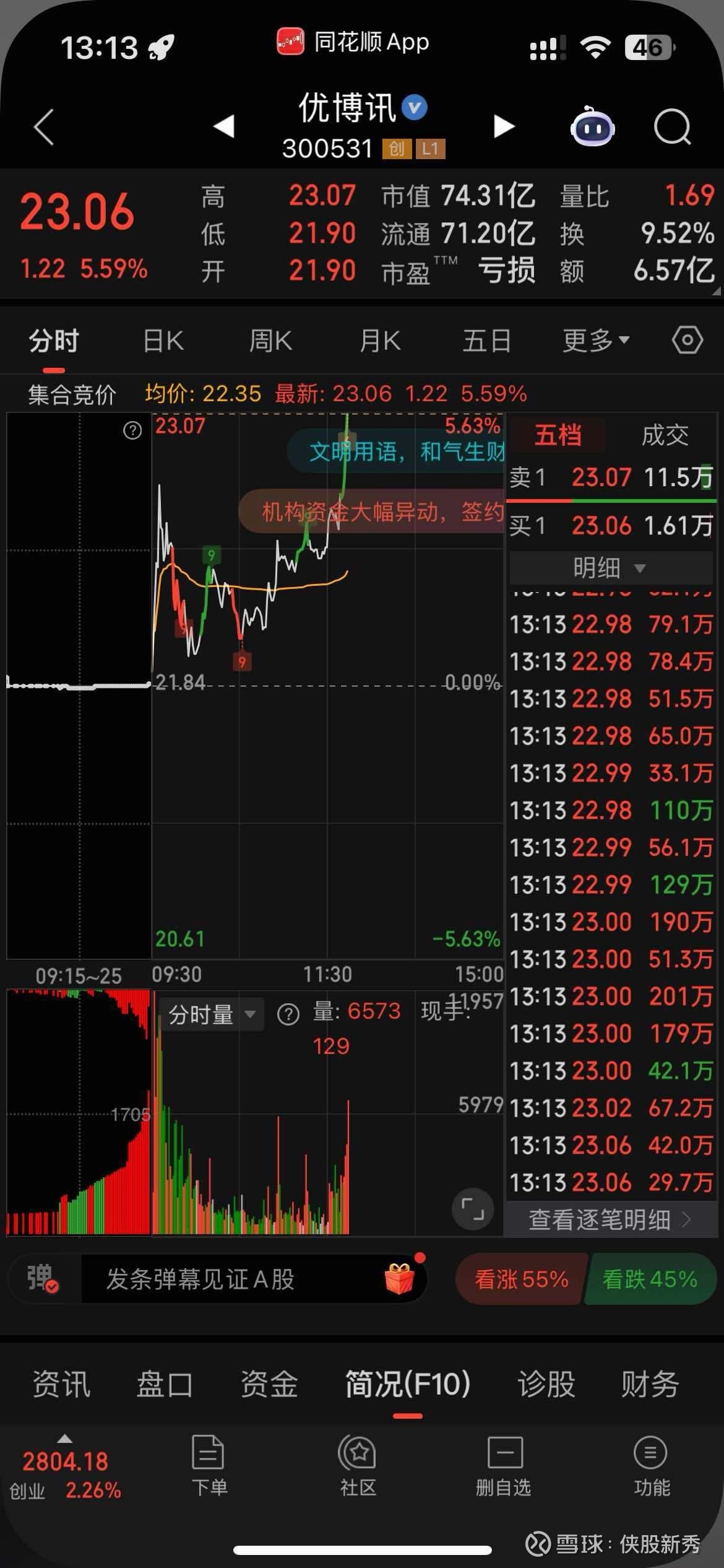 冲到+7左右就兑现了,思路就是安妮上不了板,这个自然也就降低预期了。开盘分时均线附近又搞回了