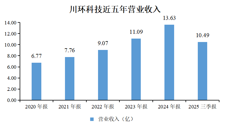 川环科技长期深耕传统燃油车与新能源汽车用橡塑软管及总成领域,是连续多年获评“中国胶管十强企业”的行业代表。2025年前三季度,公司实现营业收入10.49亿元,同比增长12.08%;在行业竞争加剧、主机厂压价等背景下,净利润阶段性承压,但整体经营质量与现金创造能力保持稳定。