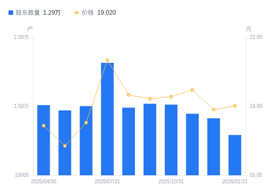 近一年(2025年2月10日至2026年1月31日),优德精密A股股东户数从1.58万户,减低至1.29万户,降幅18.25%,区间股价上涨6.97%。