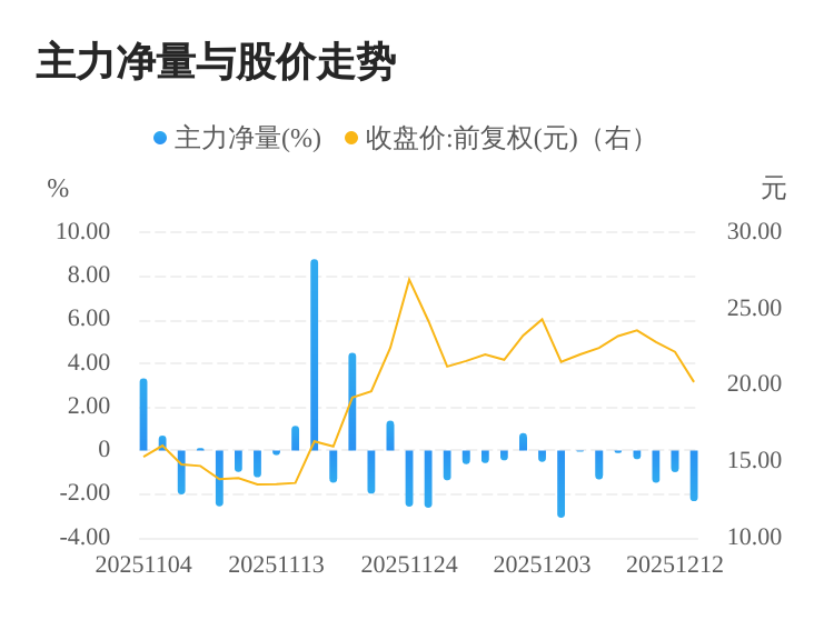该股今日主力净量为负,且值较大,表明主力大幅流出,主动卖出明显多于主动买入。与此同时,今日换手率较高,主力抛售的嫌疑较大。投顾建议:投资者短期宜合理控制仓位,谨慎为佳。