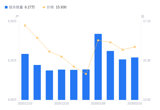 近一年(2025年2月10日至2026年2月10日),欧普康视A股股东户数从6.76万户,减低至6.27万户,降幅7.20%,区间股价下跌7.60%。