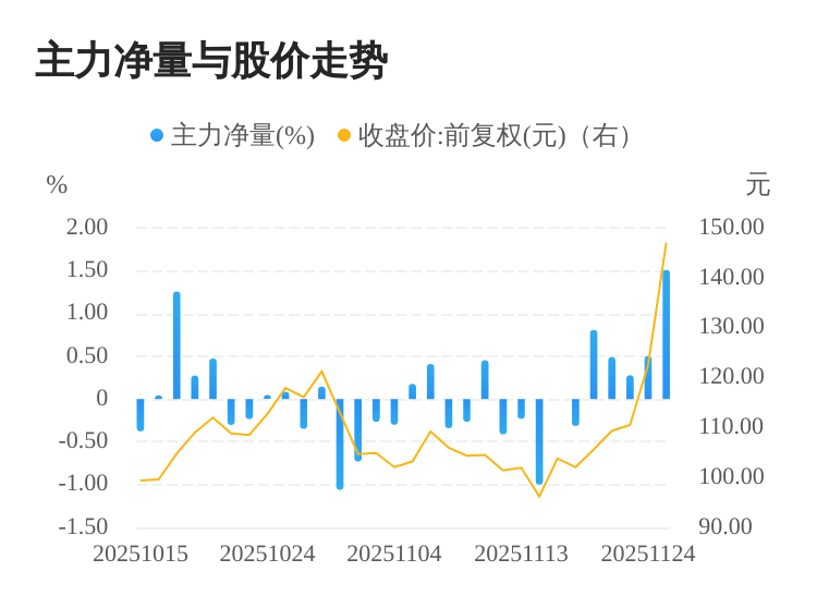 光库科技(300620)11月25日主力(dde大单净额)净流入5.39亿元,涨跌幅为20.00%,主力净量(dde大单净额/流通股)为1.51%,两市排名59/5169。