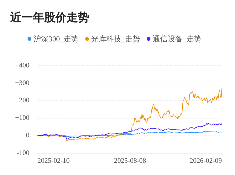 02月09日,光库科技(300620)股价大涨。截至今日收盘,光库科技上涨17.72%,收盘价为184.70元,收盘价创历史新高。