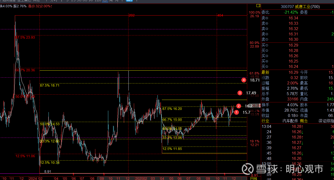 2.价格,百分比显示15.63是近循环的半分位,能突破站稳代表波段内趋势的进一步转多,当前支撑15.6-15.3,上方短压先看17.5,小波段预期18.7-19.3,大波段空间23.96-24.6...