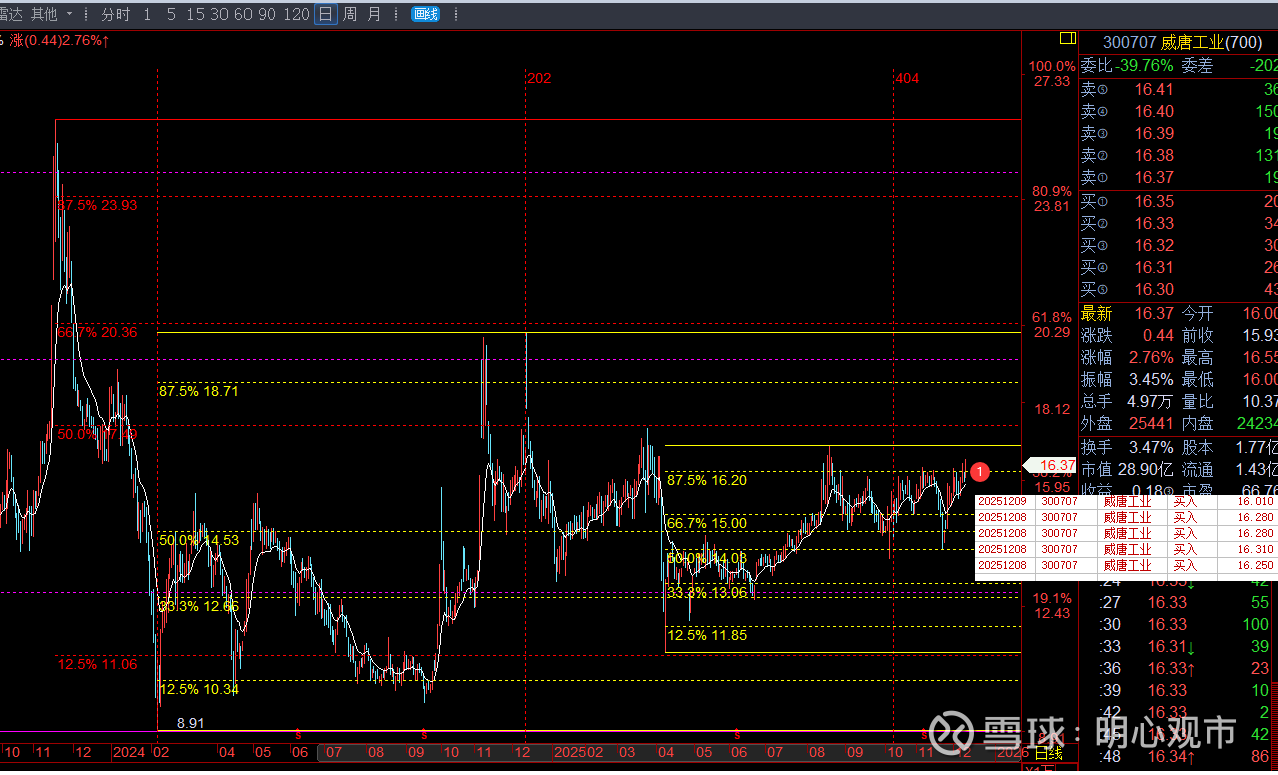 16.2一线突破后化为支撑叠加白线16为当前支撑区,最低回踩16.16后迅速翻红
