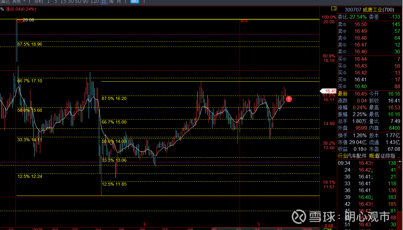16.2这个小级别的次顶位在突破,日线这个平台震荡的时间也不短了,,白线上,能突破16.2,则有望走出继续往...