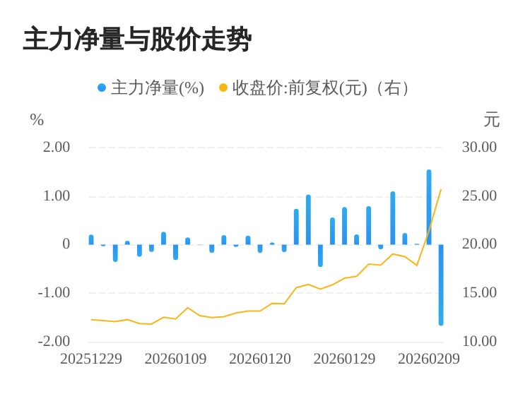 该股今日主力净量为负,且值较大,表明主力大幅流出,主动卖出明显多于主动买入。与此同时,今日换手率较高,主力抛售的嫌疑较大。投顾建议:投资者短期宜合理控制仓位,谨慎为佳。