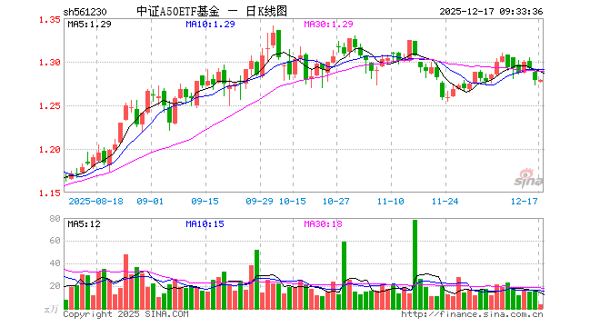 12月17日,中证A50ETF基金(561230)开盘跌0.16%,报1.277元。中证A50ETF基金(561230)重仓股方面,宁德时代开盘跌0.52%,贵州茅台涨0.21%,中国平安涨0.07%,招商银行跌0.24%,紫金矿业涨0.76%,美的集团跌0.31%,长江电力跌0.14%,立讯精密跌0.31%,恒瑞医药涨0.34%,比亚迪涨0.27%。