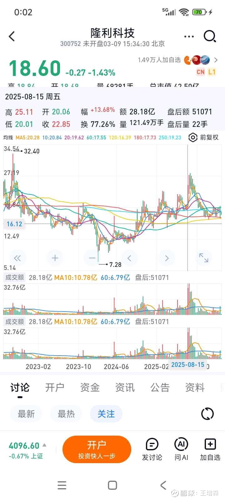 2025年8月12,曾建议减仓隆利科技。也不知道当初问的老板怎么操作的。那波完成后,到现在也没回去。