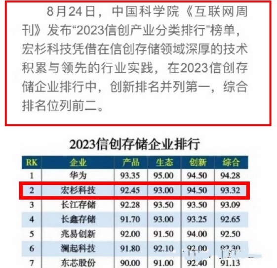 在2023 年信创存储企业排行榜中,宏杉科技以「创新力第一、综合第二」的成...