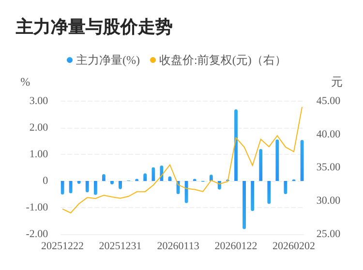 三角防务(300775)02月03日主力(dde大单净额)净流入3.41亿元,涨跌幅为17.99%,主力净量(dde大单净额/流通股)为1.54%,两市排名43/5186。