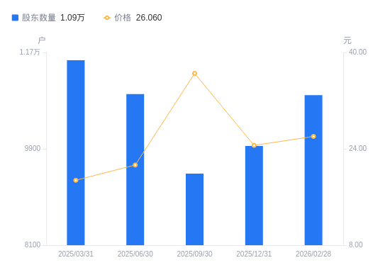 3月26日消息,数据显示,截至2025年12月31日,泰林生物A股股东总户数为9952户,较上期(2025年9月30日)增加515户,增幅5.46%。公司最新A股总股本为1.21亿股,其中流通A股7605.11万股,户均持有流通A股数量为7641.79股,较上期减少417.03股,降幅5.17%;户均持流通A股市值18.78万元,较上期减少10.65万元,降幅36.20%。