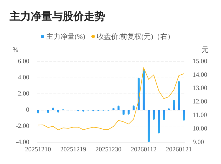 该股今日主力净量为负,且值较大,表明主力大幅流出,主动卖出明显多于主动买入。与此同时,今日换手率较高,主力抛售的嫌疑较大。投顾建议:投资者短期宜合理控制仓位,谨慎为佳。
