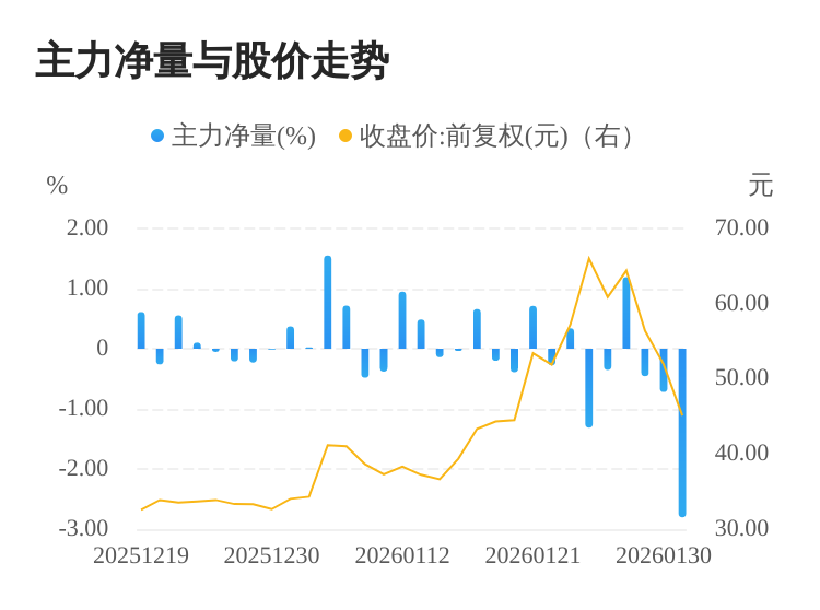 该股今日主力净量为负,且值较大,表明主力大幅流出,主动卖出明显多于主动买入。与此同时,今日换手率较高,主力抛售的嫌疑较大。投顾建议:投资者短期宜合理控制仓位,谨慎为佳。
