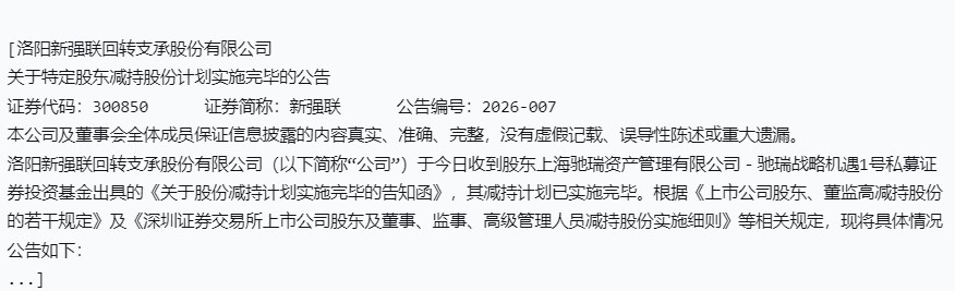 刚才利用AI来搜索新强联最近的消息。 AI竟然杜撰了一则公告。真让人无语啊。请看下面杜撰的减持公告。此公告是不存在的。