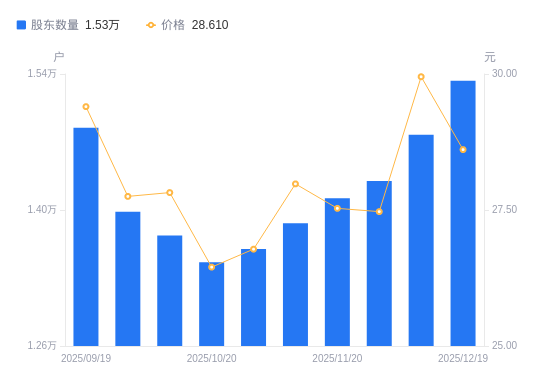 近一年(2025年1月27日至2026年1月9日),锋尚文化A股股东户数从1.59万户,减低至1.45万户,降幅8.74%,区间股价上涨6.54%。