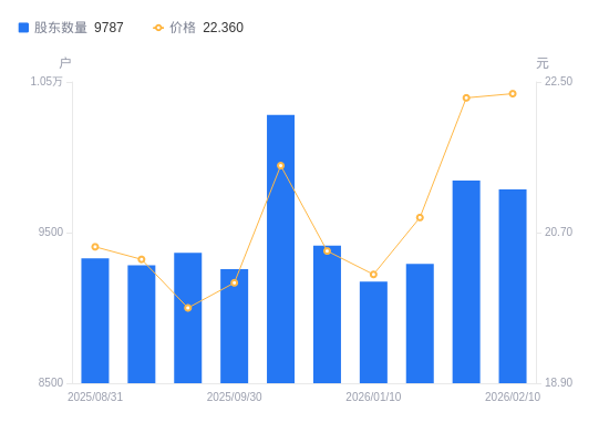 近一年(2025年2月28日至2026年2月10日),南大环境A股股东户数从9011户,增加至9787户,增幅8.61%,区间股价上涨9.82%。