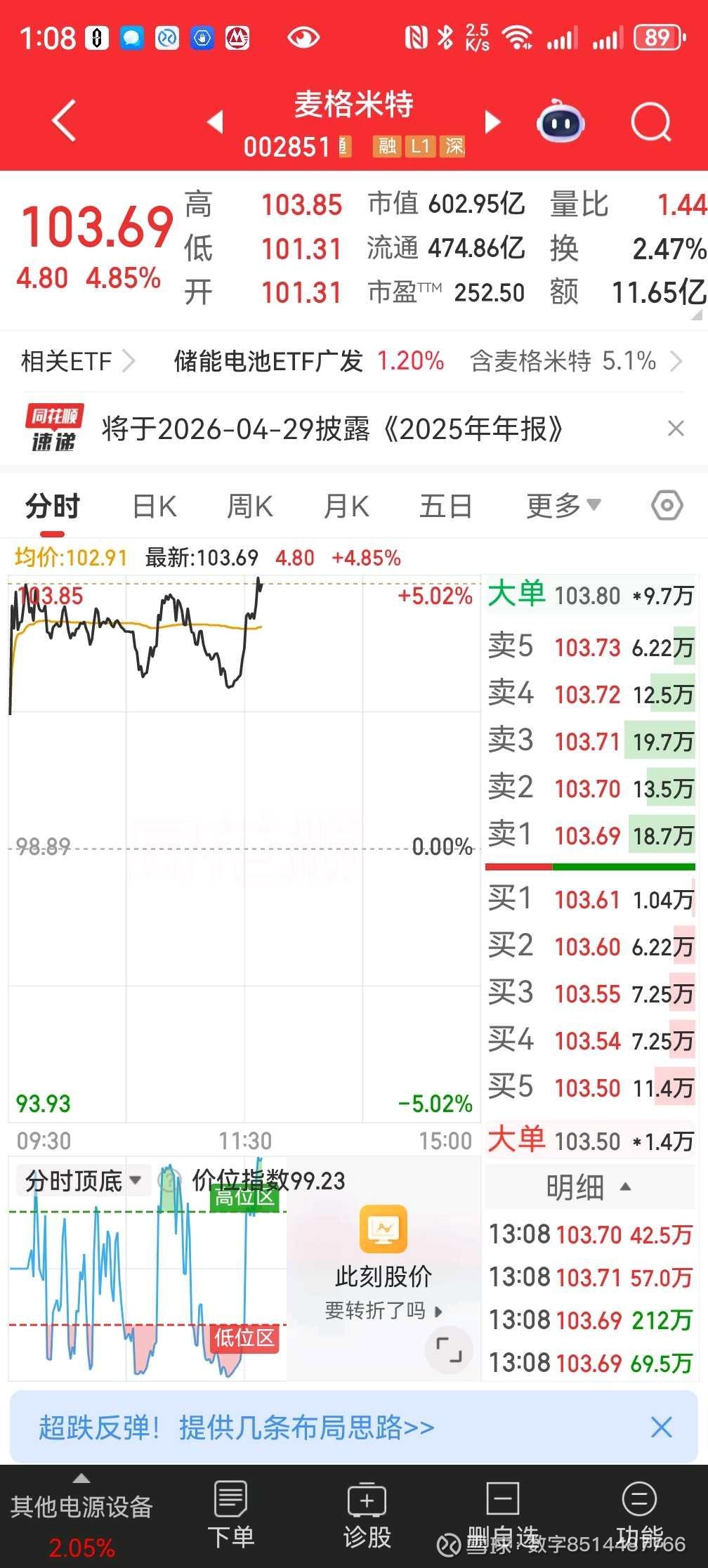 麦米真是老六,不买,它就大涨。一买,就跌。欧陆通要跌了,你站不住……吧