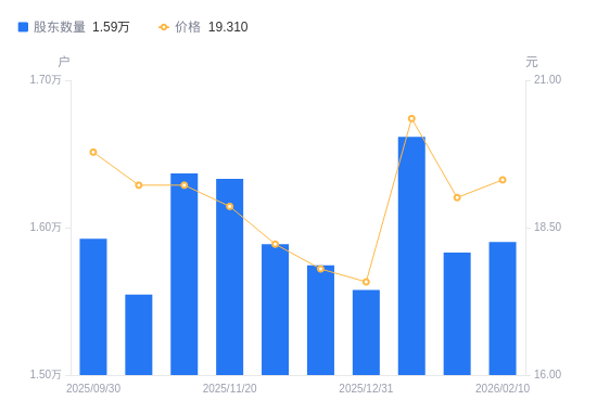 近一年(2025年2月20日至2026年2月10日),迦南智能A股股东户数从1.96万户,减低至1.59万户,降幅18.78%,区间股价下跌14.22%。