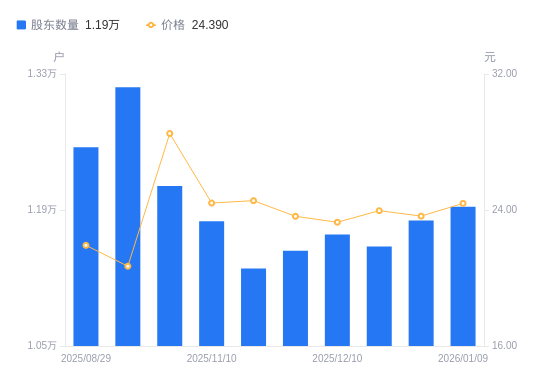 近一年(2025年1月20日至2026年1月9日),松原安全A股股东户数从6505户,增加至1.19万户,增幅83.44%,区间股价上涨57.41%。