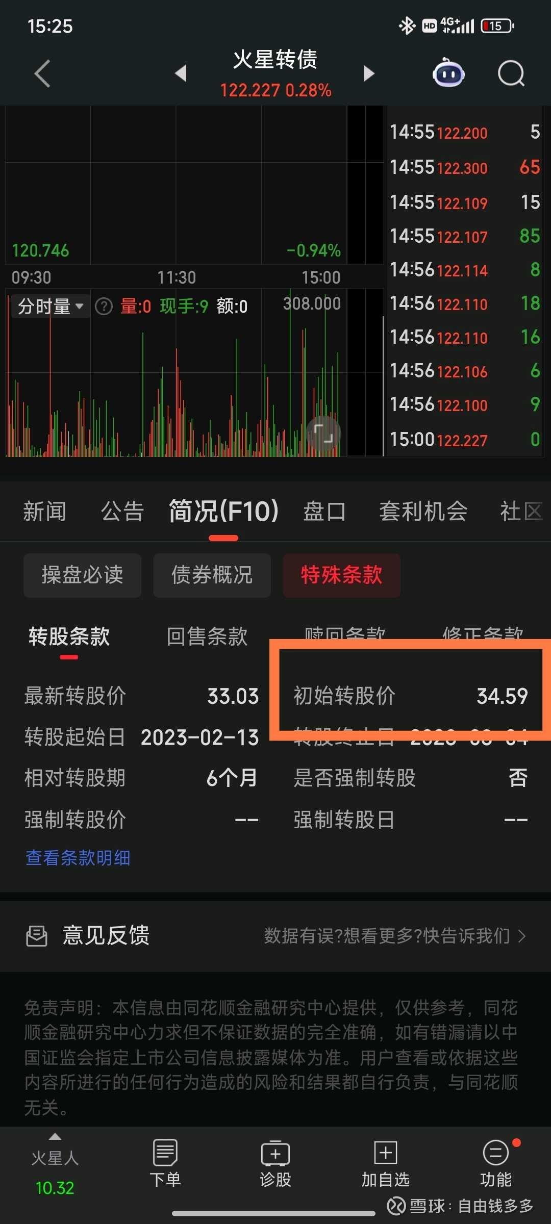 现价10.32,初始转股价34.59,你会买火星人吗?