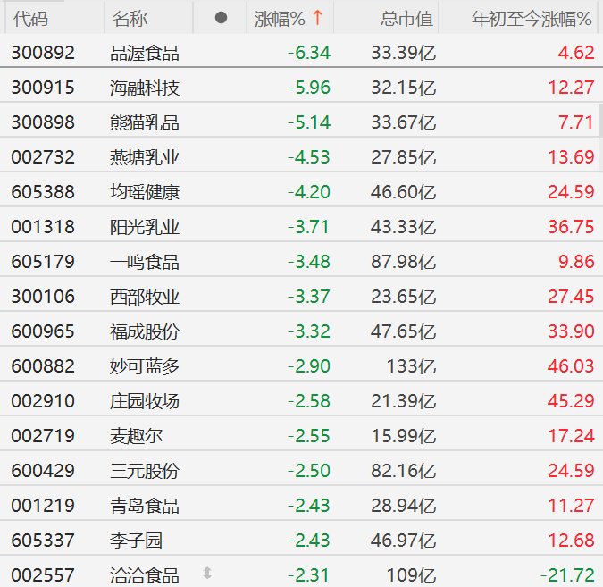 格隆汇12月4日|A股市场乳业股午后跌幅进一步扩大,其中,品渥食品跌超6%,海融科技、熊猫乳品跌超5%,燕塘乳业、均瑶健康跌超4%,阳光乳业、一鸣食品、西部牧业、福成股份跌超3%。