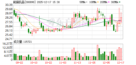12月17日,熊猫乳品(300898)发布公告,实际控制人的一致行动人陈秀琴在减持计划期限内通过集中竞价方式减持股份70万股,占公司总股本的0.5645%。
