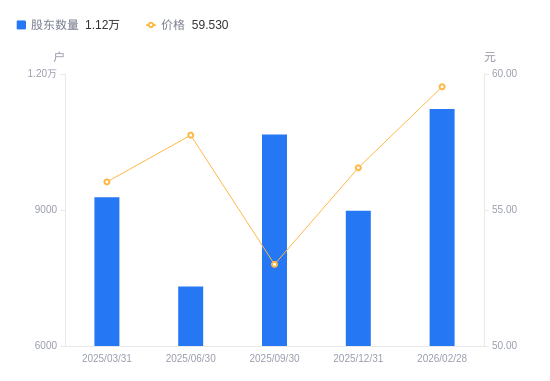 近一年(2025年2月28日至2026年2月28日),瑞丰新材A股股东户数从7598户,增加至1.12万户,增幅47.76%,区间股价上涨20.01%。