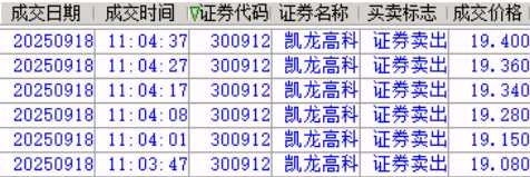 25年 9月11 日实时成交价结束300912凯龙高科,涨14.6%(实时成交价:300912凯龙高科今日实时成交价15.96元,(25年9月11日))