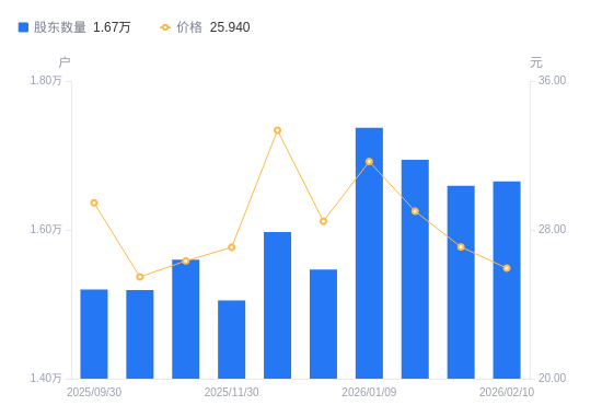 近一年(2025年3月31日至2026年2月10日),南极光A股股东户数从1.13万户,增加至1.67万户,增幅47.12%,区间股价上涨45.89%。