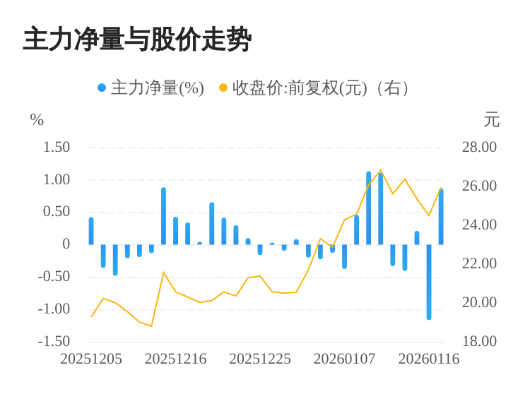 冠中生态(300948)01月19日主力(dde大单净额)净流入3328.12万元,涨跌幅为5.92%,主力净量(dde大单净额/流通股)为0.87%,两市排名123/5184。