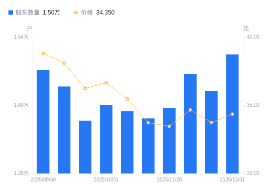 近一年(2024年12月31日至2025年12月31日),博硕科技A股股东户数从1.46万户,增加至1.5万户,增幅3.36%,区间股价上涨10.67%。