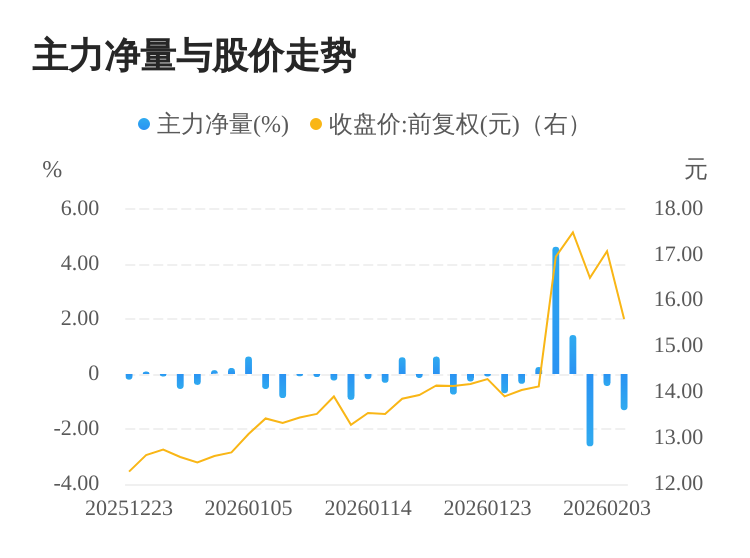 该股今日主力净量为负,且值较大,表明主力大幅流出,主动卖出明显多于主动买入。与此同时,今日换手率较高,主力抛售的嫌疑较大。投顾建议:投资者短期宜合理控制仓位,谨慎为佳。
