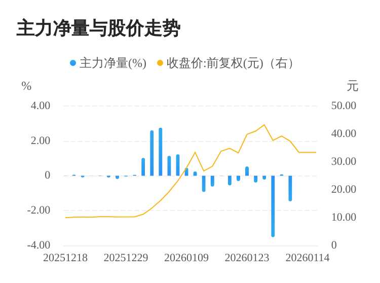 志特新材(300986)01月29日主力(dde大单净额)净流出1702.06万元,涨跌幅为4.28%,主力净量(dde大单净额/流通股)为0.08%,两市排名965/5185。