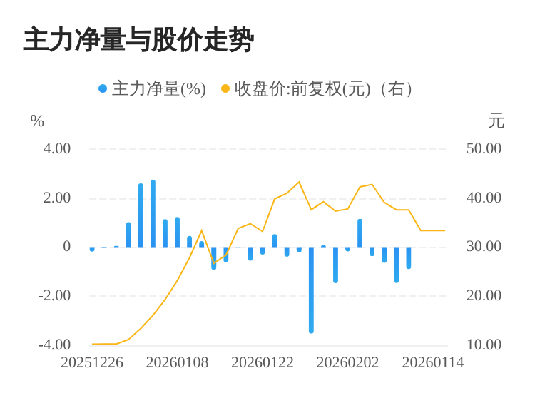 志特新材(300986)02月09日主力(dde大单净额)净流出1.38亿元,涨跌幅为-0.03%,主力净量(dde大单净额/流通股)为-0.90%,两市排名5120/5187。