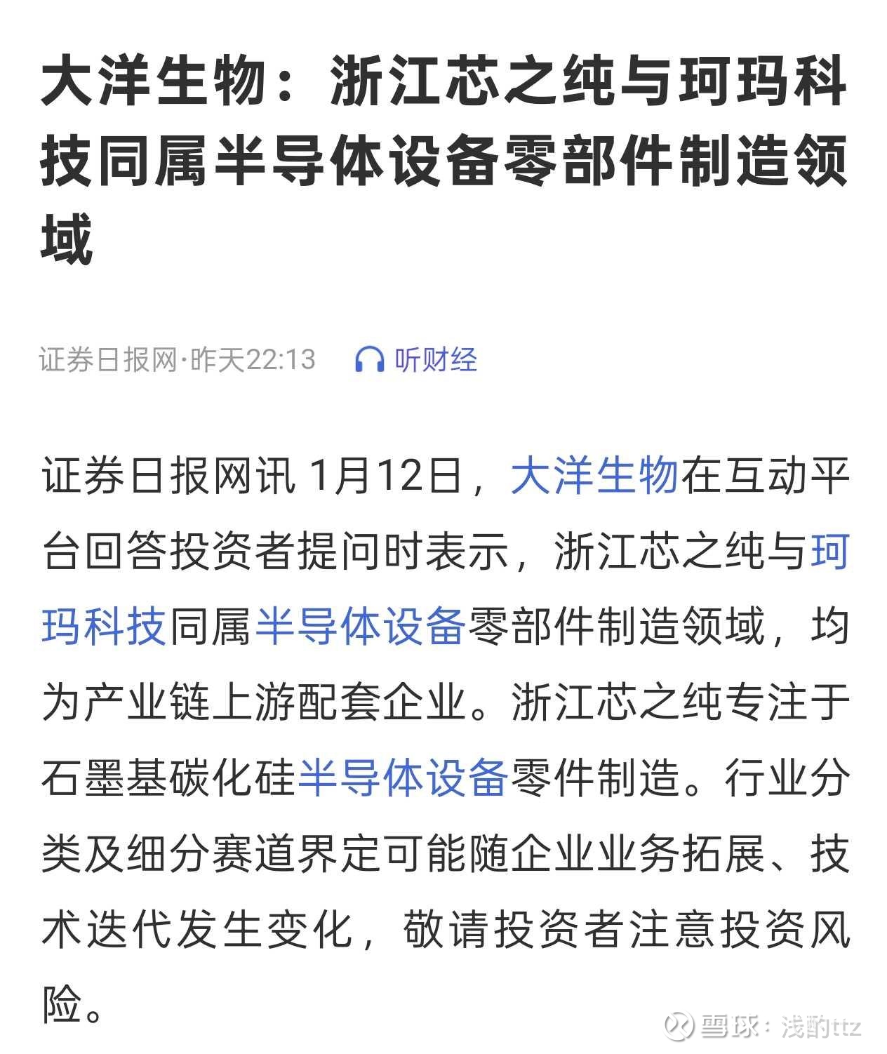 参股公司浙江芯之纯(参股百分之三十,公司和大洋在一块地上,完全收购的潜力很大)主要生产半导体级高纯陶瓷产品,是半导体设备国产替代的核心耗材,类似生产半导体陶瓷部...