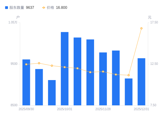 近一年(2024年12月31日至2025年12月31日),森赫股份A股股东户数从1.1万户,减低至9637户,降幅12.00%,区间股价上涨116.49%。