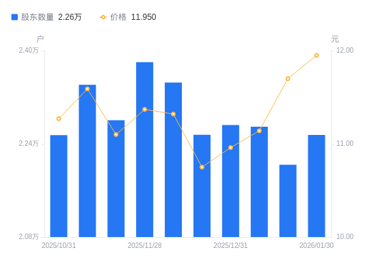 近一年(2025年2月10日至2026年1月30日),中粮科工A股股东户数从2.47万户,减低至2.26万户,降幅8.71%,区间股价上涨18.32%。
