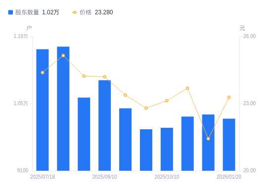 近一年(2025年3月10日至2026年1月20日),本立科技A股股东户数从1.01万户,增加至1.02万户,增幅1.30%,区间股价上涨19.42%。