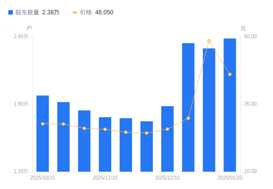近一年(2025年1月20日至2026年1月20日),邵阳液压A股股东户数从1.18万户,增加至2.38万户,增幅101.29%,区间股价上涨207.62%。