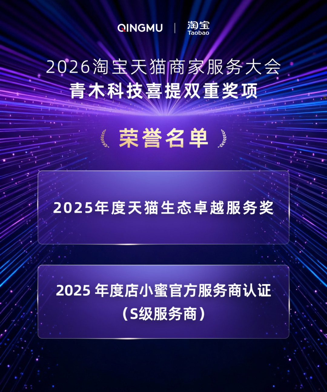 青木科技(301110)凭借多年专业沉淀、领先的数智化服务能力,以及与平台深度绑定的生态协同优势,一举斩获2025年度天猫生态卓越服务奖、2025年度店小蜜官方服务商认证(S级服务商)两大重磅荣誉。与此同时,由青木科技运营的合作品牌亦捷报频传,成功斩获年度AI智能卓越服务奖、年度五星店铺、行业灯塔奖、优+服务先锋等多项殊荣,全方位彰显了青木科技在服务赋能、智能化升级领域的硬实力。
