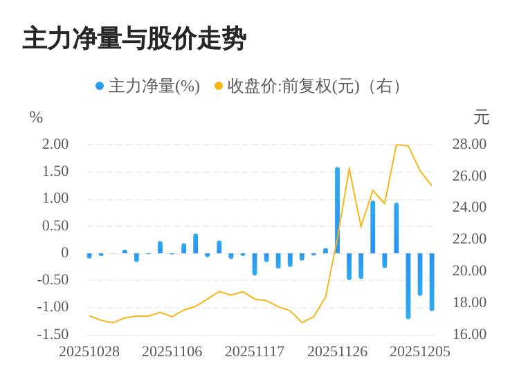 该股今日主力净量为负,且值较大,表明主力大幅流出,主动卖出明显多于主动买入。与此同时,今日换手率较高,主力抛售的嫌疑较大。投顾建议:投资者短期宜合理控制仓位,谨慎为佳。