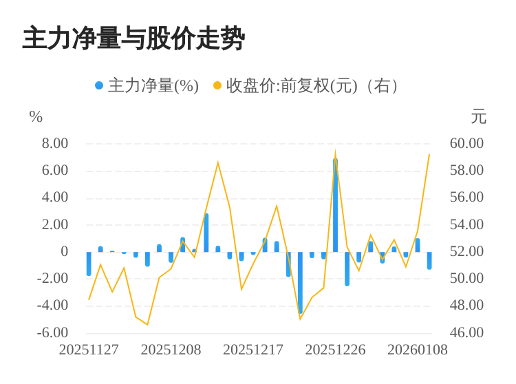 该股今日主力净量为负,且值较大,表明主力大幅流出,主动卖出明显多于主动买入。与此同时,今日换手率较高,主力抛售的嫌疑较大。投顾建议:投资者短期宜合理控制仓位,谨慎为佳。